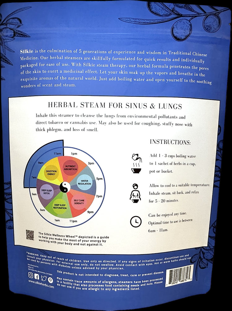 Hít hơi nước này để làm sạch phổi khỏi các chất ô nhiễm môi trường và sử dụng thuốc lá hoặc cần sa trực tiếp. Cũng có thể được sử dụng để điều trị ho, nghẹt mũi với đờm đặc và mất khứu giác.*