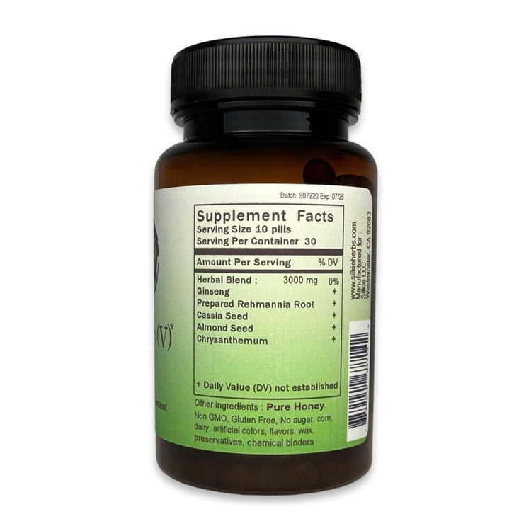 Herbal Blend: Ginseng Prepared Rehmannia Root Cassia Seed Apricot Seed Chrysanthemum |