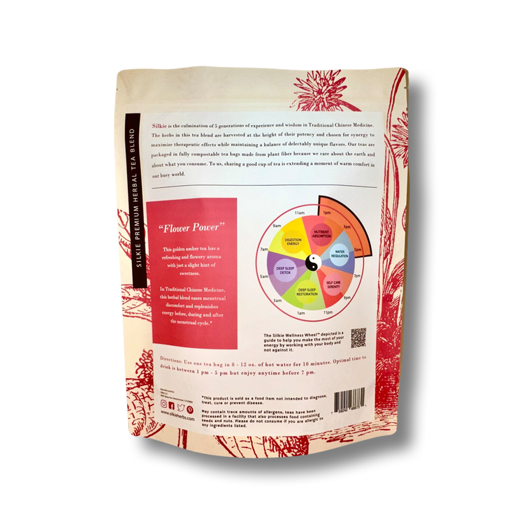Studies published in journals such as the Journal of Education and Health Promotion have highlighted the anti-inflammatory effects of Rose petals (Mei Gui Hua), showing its significant reduction in menstruation-related headache, fatigue, bloating, anxiety and pain. Similarly, research in Evid Based Complement Alternat Med has demonstrated that Peach Blossom (Tao Hua) promotes diuresis and defecation, improves blood circulation, and alleviates blood stasis, making it particularly beneficial for those suffering from menstrual-related symptoms.