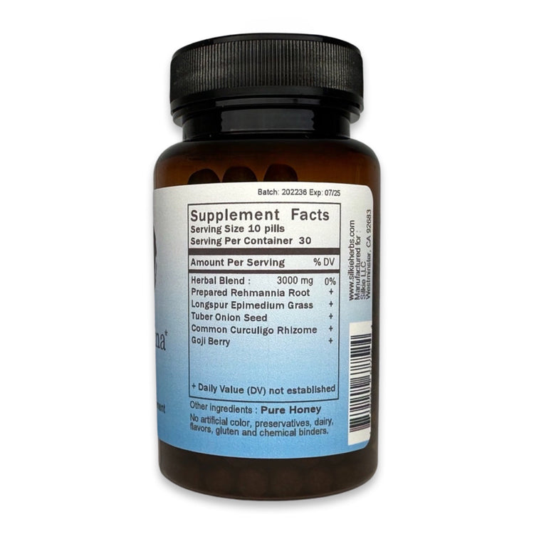 Herbal Blend: Prepared Rehmannia Root Longspur Epimedium Grass Tuber Onion Seed Common Curculigo Rhizome Goji Berry |