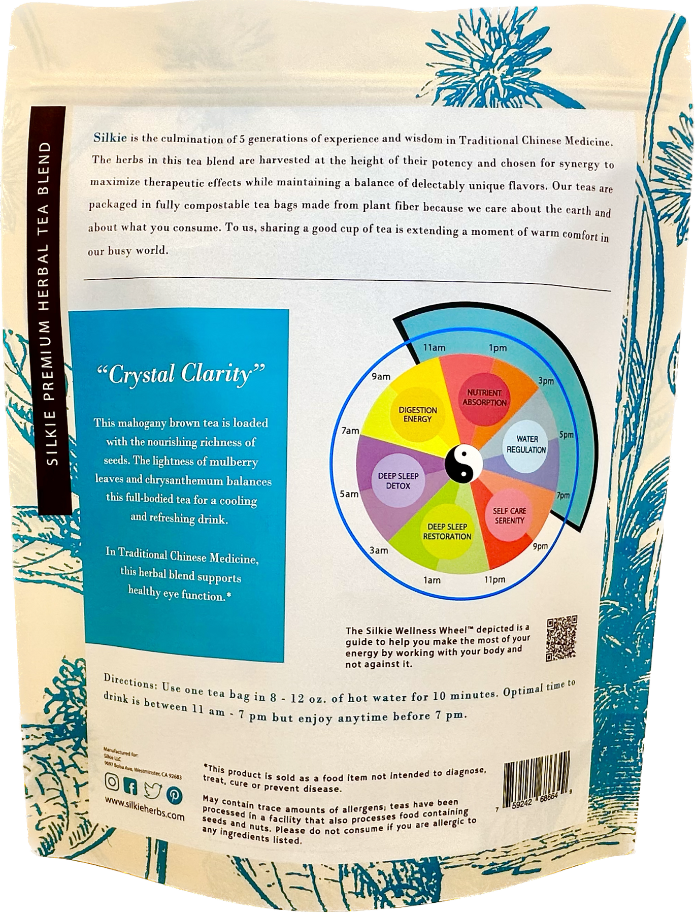 Mỗi hỗn hợp Trà thảo mộc của chúng tôi đều được thu hoạch khi đạt độ hiệu quả cao nhất, mang hương vị đặc trưng và lợi ích có mục đích, phù hợp với thời gian cụ thể trên Bánh xe sức khỏe 24 giờ Silkie của chúng tôi để có hiệu quả và tận hưởng tối ưu.