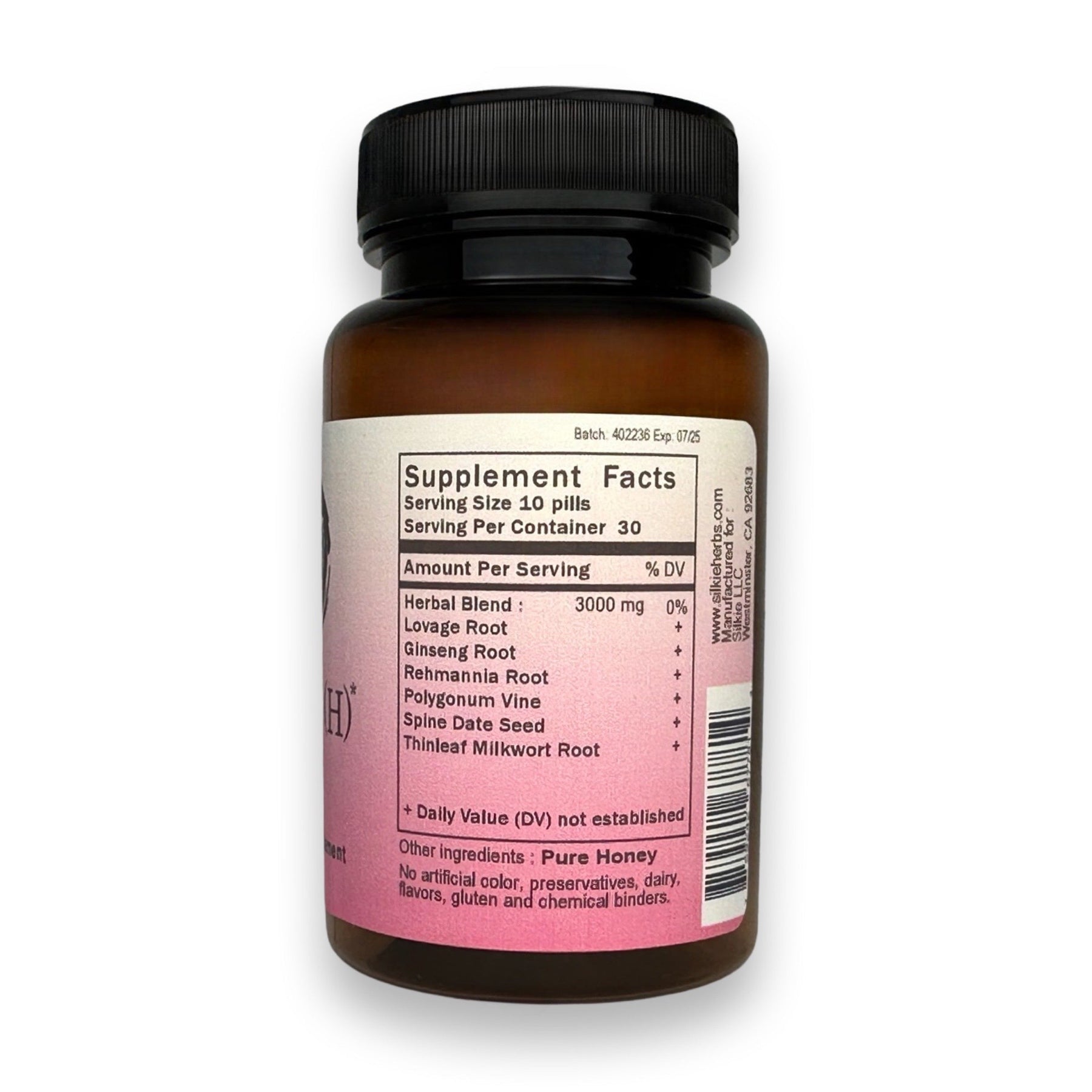 Thực phẩm bổ sung thảo dược của chúng tôi được làm từ mật ong tự nhiên làm chất kết dính. Mật ong có thể hỗ trợ phổi, ruột, lá lách và dạ dày; Nó hoạt động như một chất bảo quản tự nhiên có đặc tính kháng khuẩn và chữa lành. Không giống như các công ty thực phẩm bổ sung thảo dược khác sử dụng tinh bột, magiê và các chất hóa học khác làm chất kết dính cho thực phẩm bổ sung của họ, chúng tôi chỉ sử dụng 100% mật ong. Chúng tôi cũng tránh sử dụng viên nang thực vật vì chúng cần các thành phần hóa học để tạo thành hình dạng viên nang.