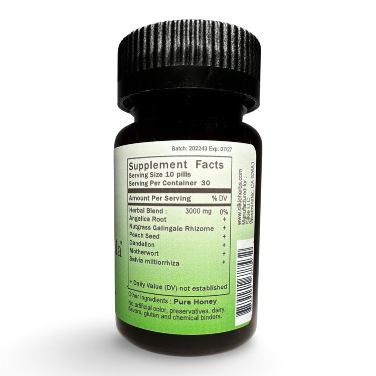 Hỗn hợp thảo dược: Rễ cây Angelica Thân rễ cây hạt dẻ Galingale Hạt đào Bồ công anh cây ích mẫu Cây xô thơm |