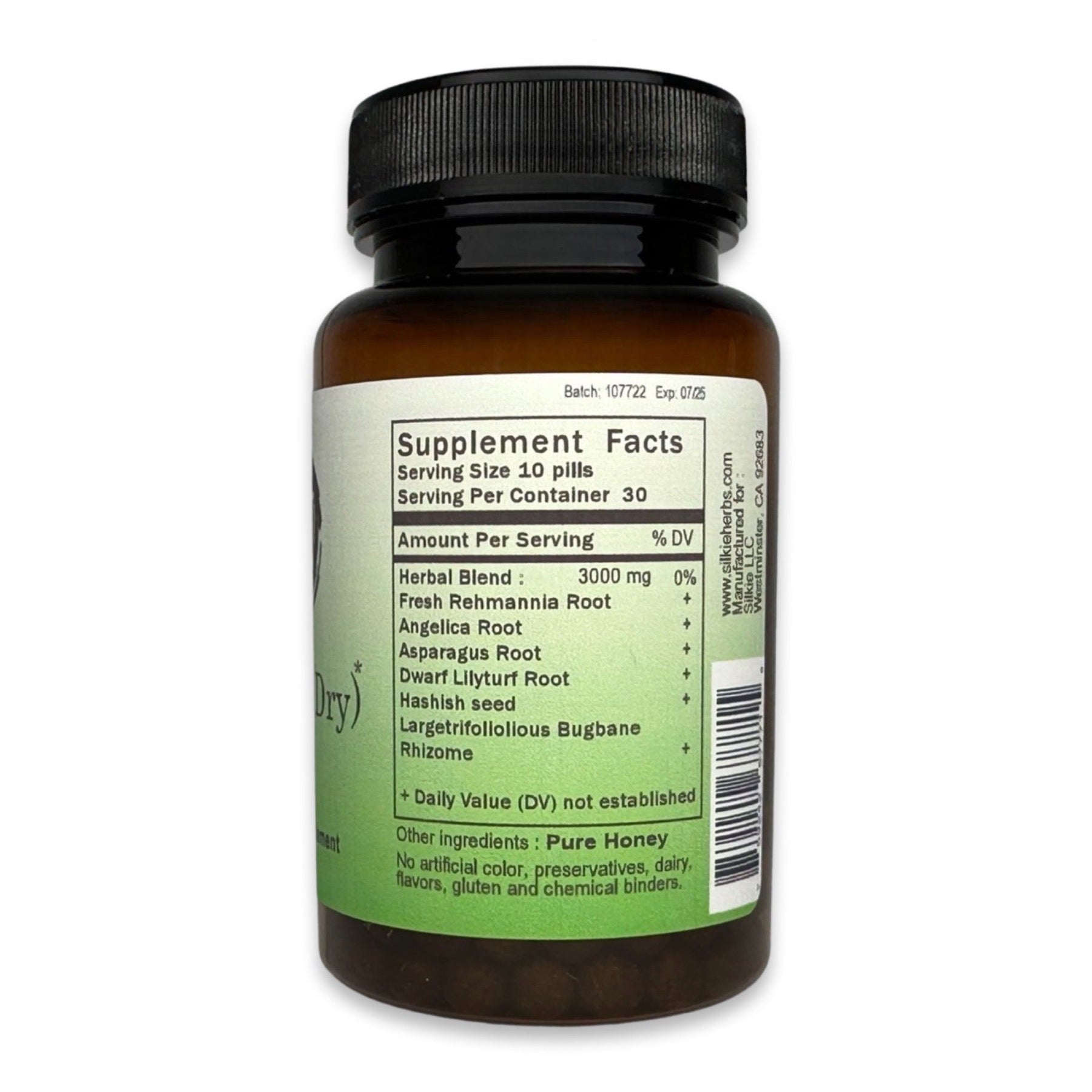 Thực phẩm bổ sung thảo dược của chúng tôi được làm từ mật ong tự nhiên làm chất kết dính. Mật ong có thể hỗ trợ phổi, ruột, lá lách và dạ dày; Nó hoạt động như một chất bảo quản tự nhiên có đặc tính kháng khuẩn và chữa lành. Không giống như các công ty thực phẩm bổ sung thảo dược khác sử dụng tinh bột, magiê và các chất hóa học khác làm chất kết dính cho thực phẩm bổ sung của họ, chúng tôi chỉ sử dụng 100% mật ong. Chúng tôi cũng tránh sử dụng viên nang thực vật vì chúng cần các thành phần hóa học để tạo thành hình dạng viên nang.